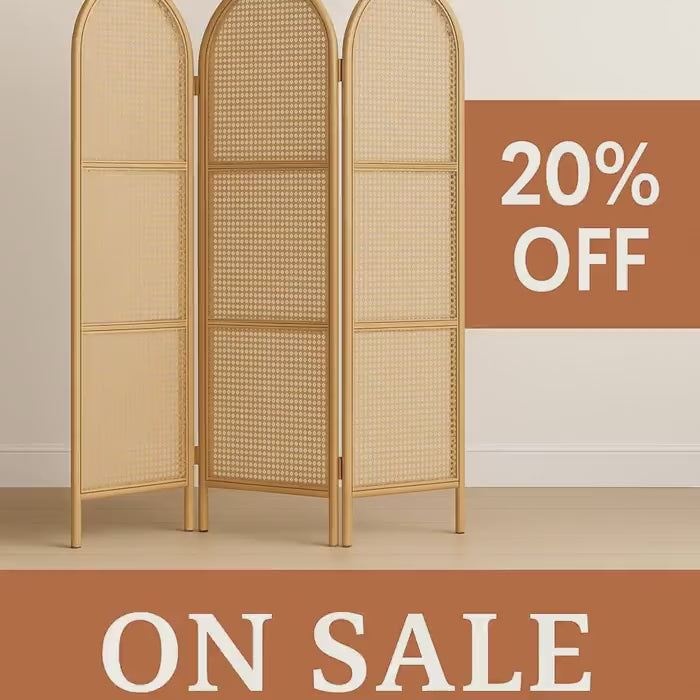Paravent en rotin miel et teck – Paravent 3 panneaux style bohème chic, paravent en bois de canne naturel, décoration estivale